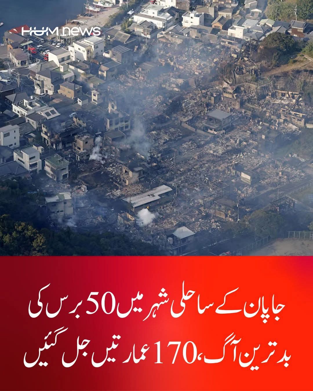 جاپان کے ساحلی شہر میں 50 سال کی بدترین آگ، 170 عمارتیں جل کر خاکستر