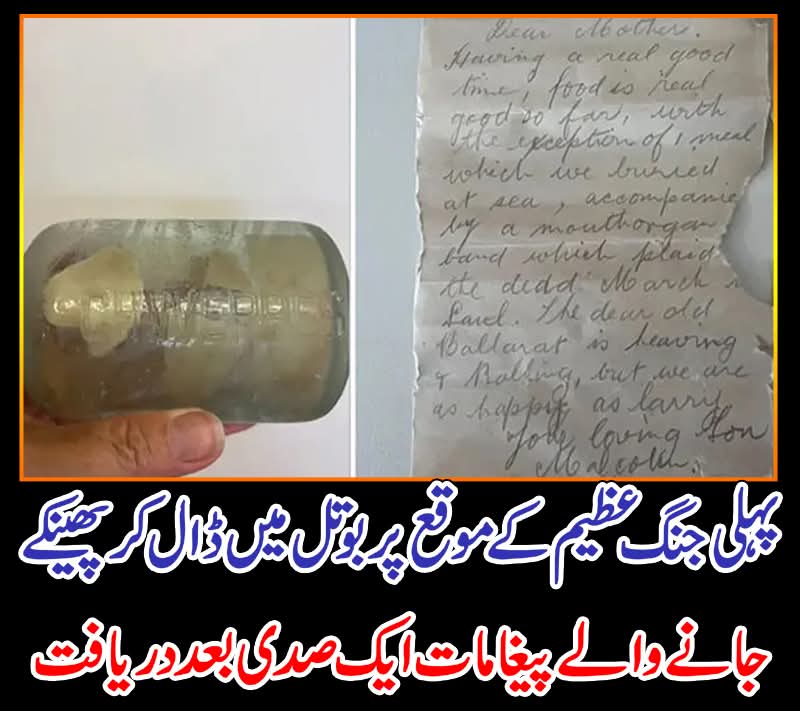 🌊 پہلی جنگِ عظیم کے موقع پر بوتل میں ڈال کر پھینکے گئے پیغامات — ایک صدی بعد دریافت!